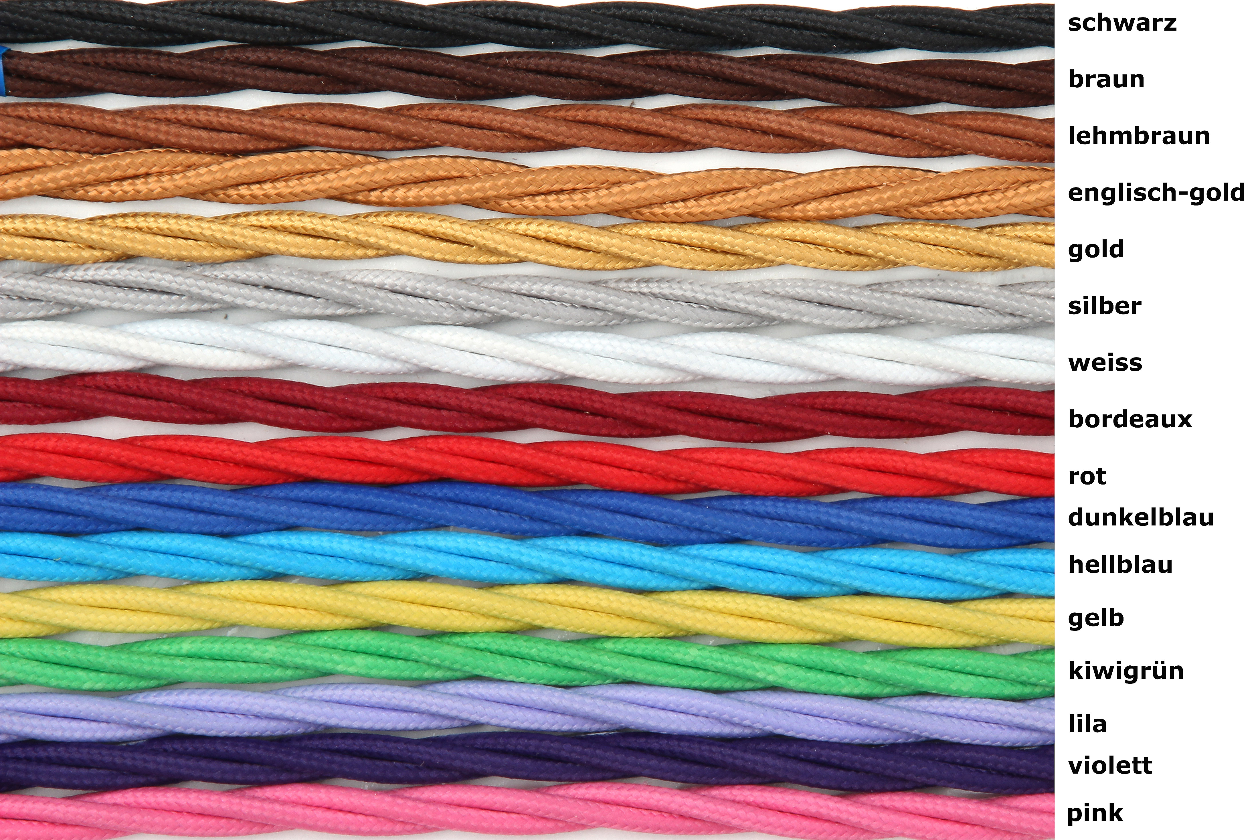 WeiterlesenTextilkabel gedreht für Lampen Hierbei handelt es sich um ein Textilkabel gedreht für Lampen. Übliche Fachbbegriffe und Suchwörter sind Textilkabel