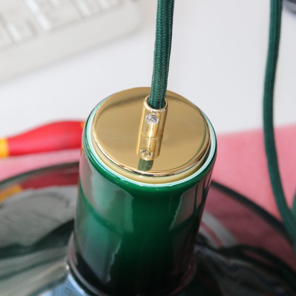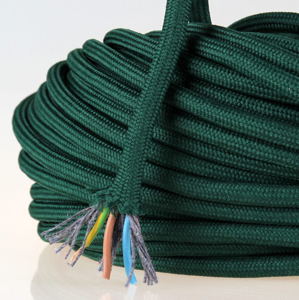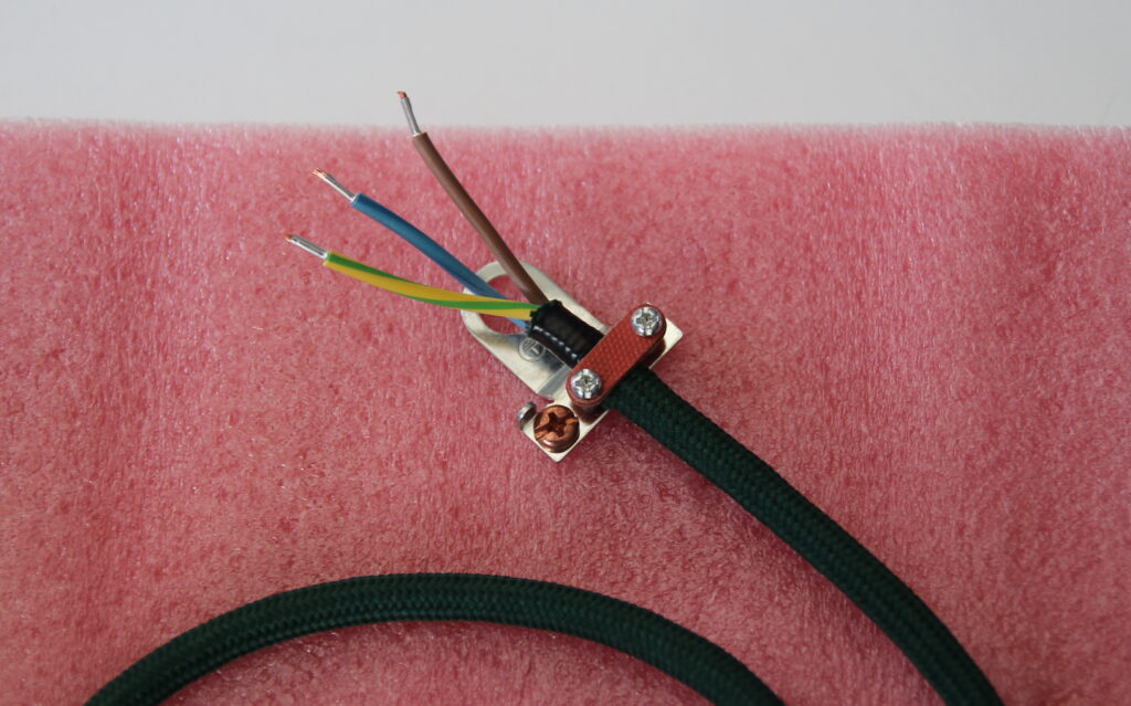 Die Kombination aus Messing und grünem Textilkabel sorgt für eine besonders elegante Optik.