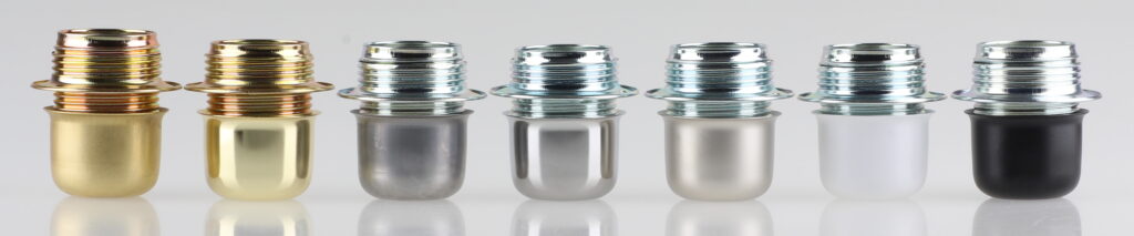 Metallfassungen sind robuster und langlebiger. Besonders bei Lampen mit mittelschweren Lampenschirmen können Kunststoff- oder Bakelitfassungen beim Umkippen brechen.