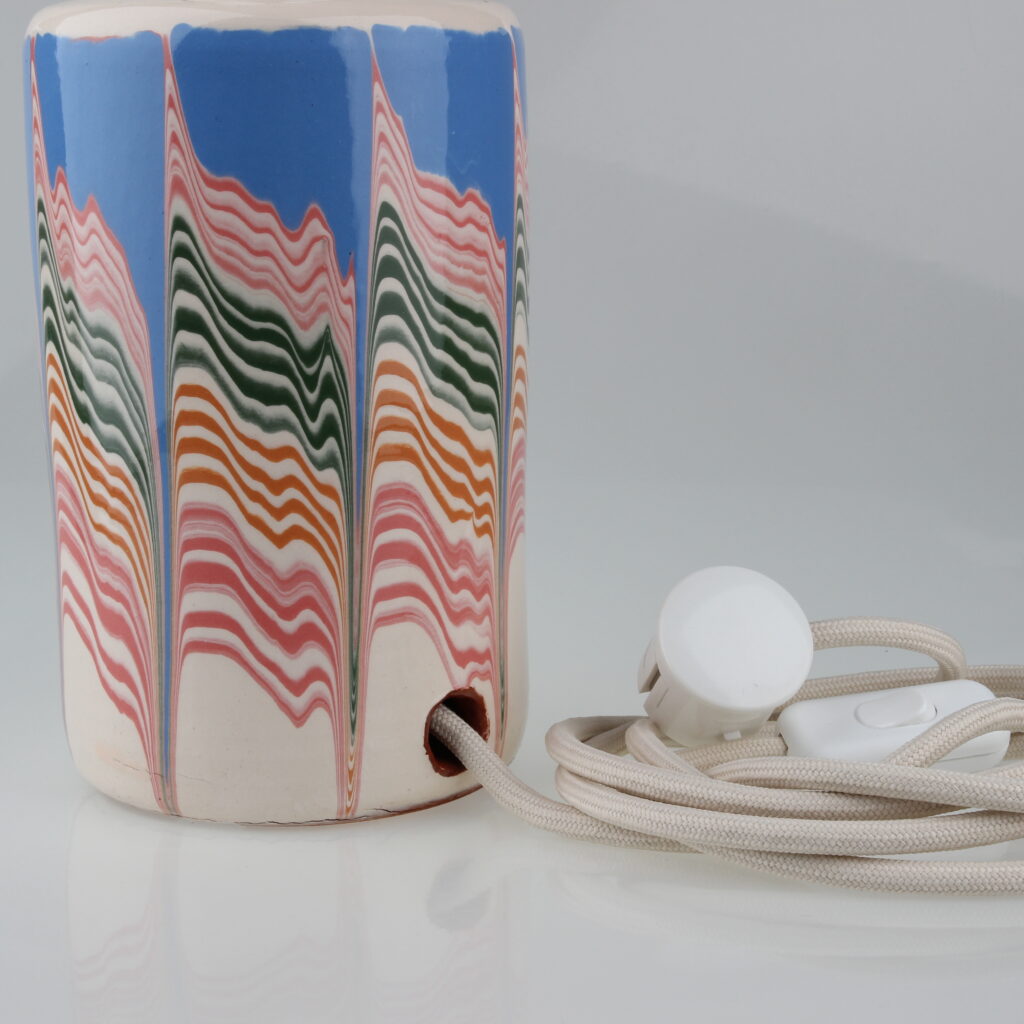 Eine selbst getöpferte Vase wurde auf Wunsch unserer Kundin zu einer individuellen Tischlampe umgebaut.
