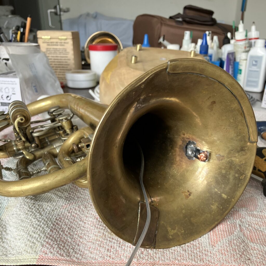 Unser Kunde Tobias Wagner, bekannt als Trompetentobi, betreibt eine Meisterwerkstatt für den Neubau und die Reparatur von Blechblasinstrumenten. Gemeinsam tauschen wir uns regelmäßig für mögliche kreative Beleuchtungslösungen aus Musikinstrumenten aus – immer mit Fokus auf eine sichere und fachgerechte Elektrik. Die hier gezeigten Bilder wurden uns für diesen Beitrag zur Verfügung gestellt.