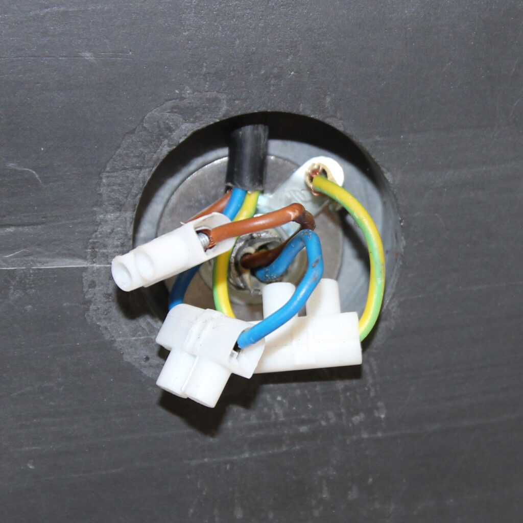 Beim Öffnen des Lampenfußes fanden wir eine sehr unsaubere und nicht fachgerechte Verdrahtung vor.