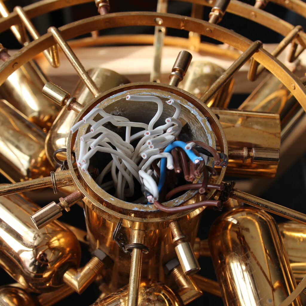Neuverkabelung eines 16-flammigen Kronleuchters – Messing Kronleuchter fachgerecht restaurieren