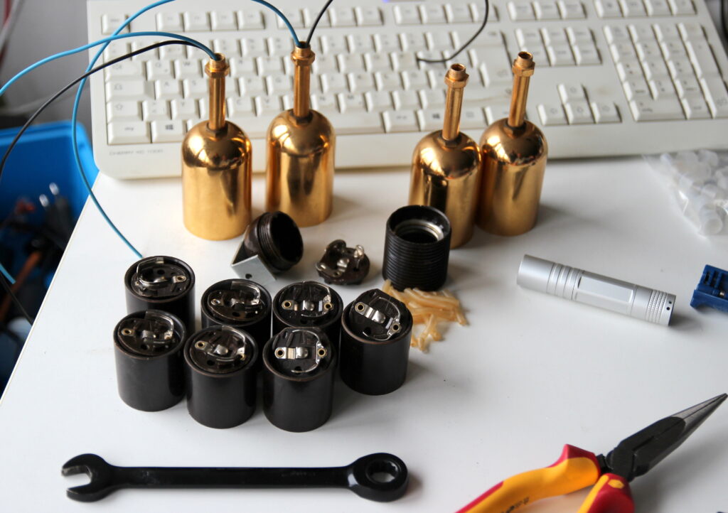 Die vorhandenen E27 Bakelit Lampenfassungen waren noch sehr gut erhalten, sodass wir diese weiter verwenden konnten.