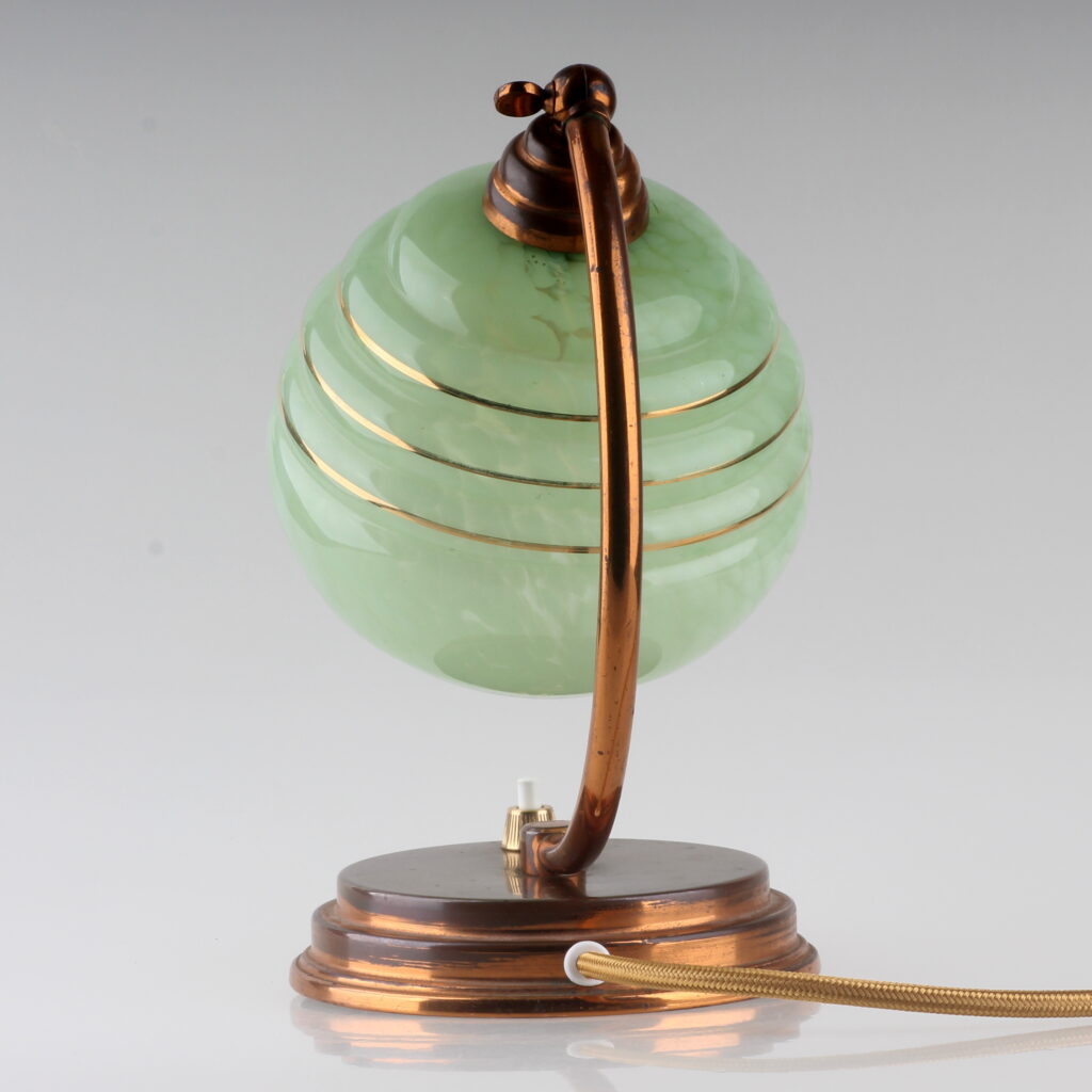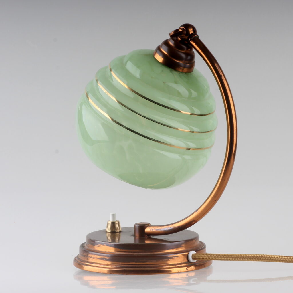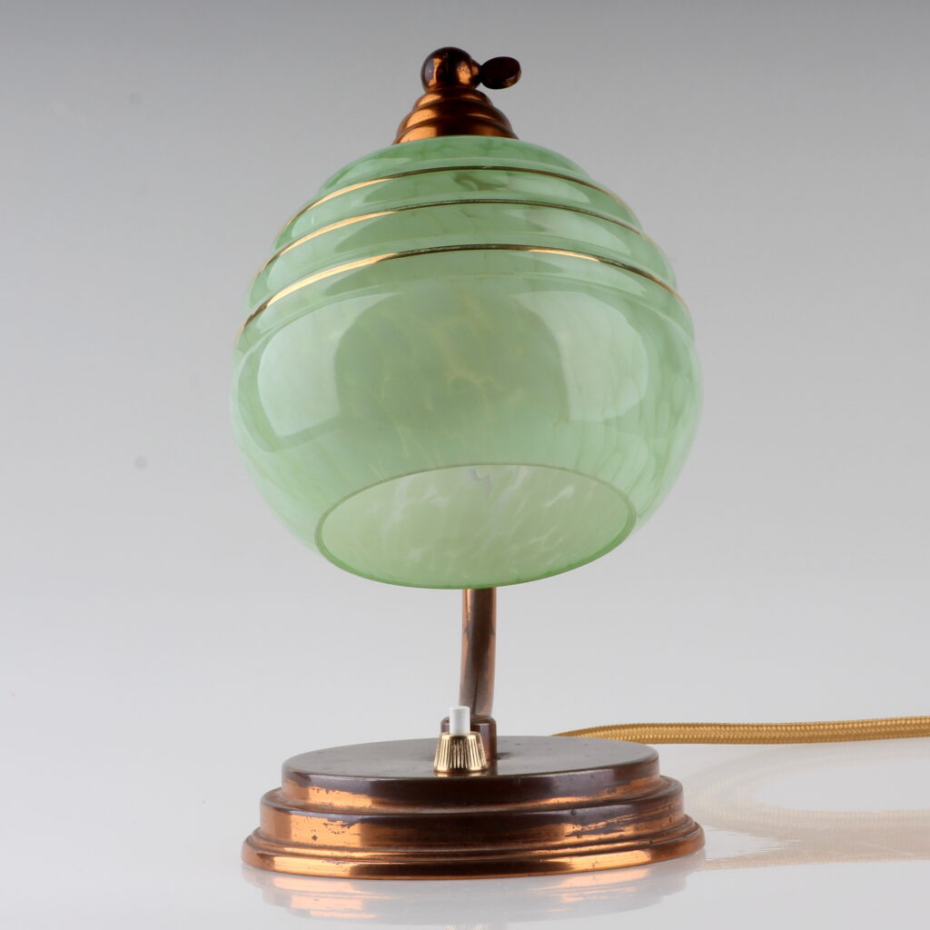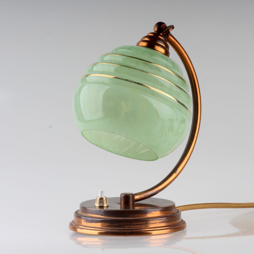 Bei der Leuchte handelt es sich um eine klassische Tischlampe im Stil Art Déco mit folgenden Merkmalen: