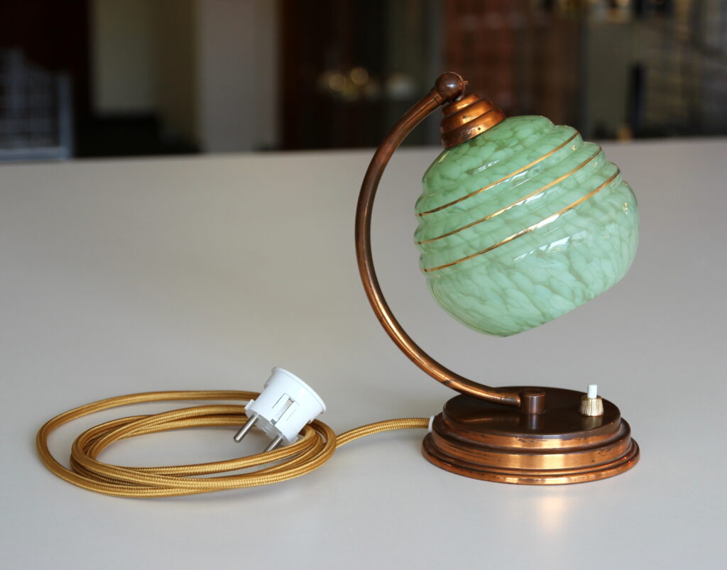 Diese Kombination ist typisch für französische Tischlampen der 1930er Jahre.