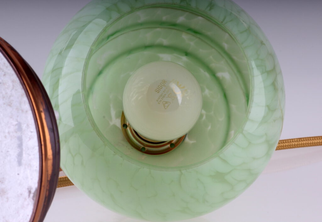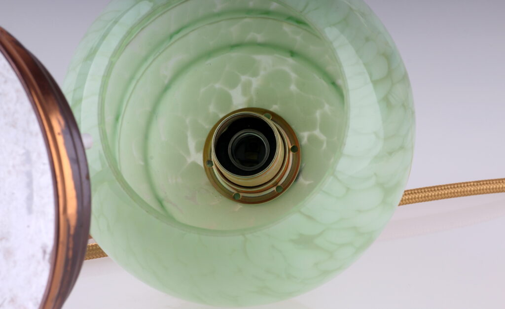 - grüner Opalglas-Schirm mit dekorativen Elementen