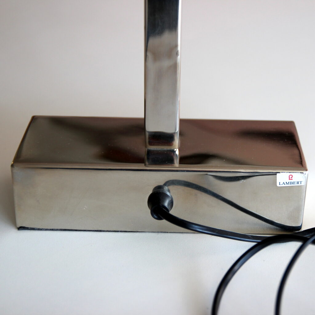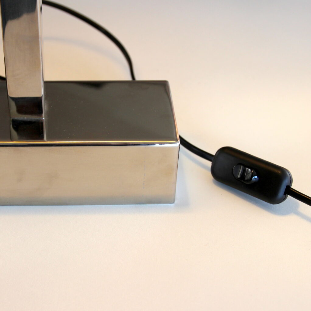 - rechteckigen Lampenfuß in silber vernickelter Ausführung