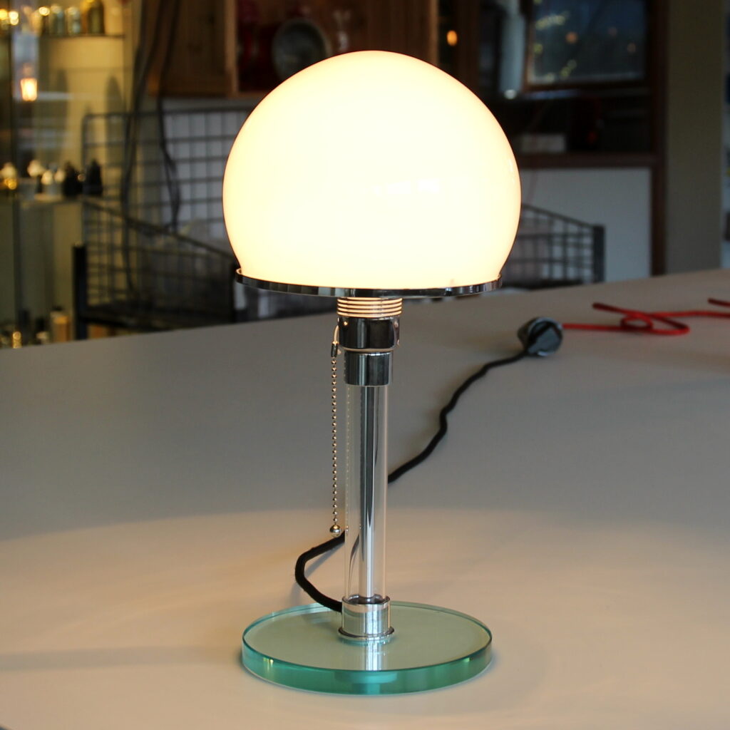 Reparatur einer Tischlampe ähnlich einer Wagenfeld Lampe