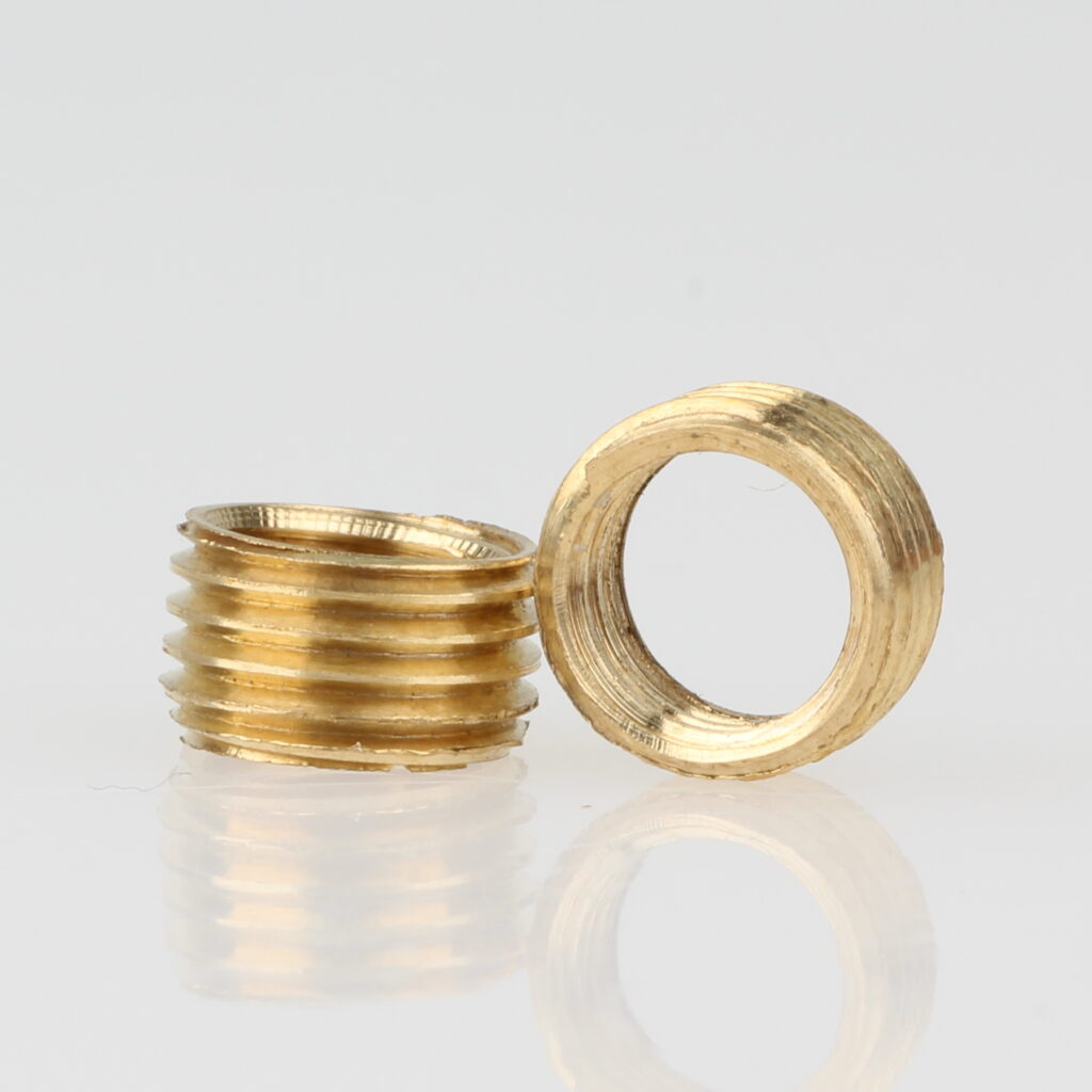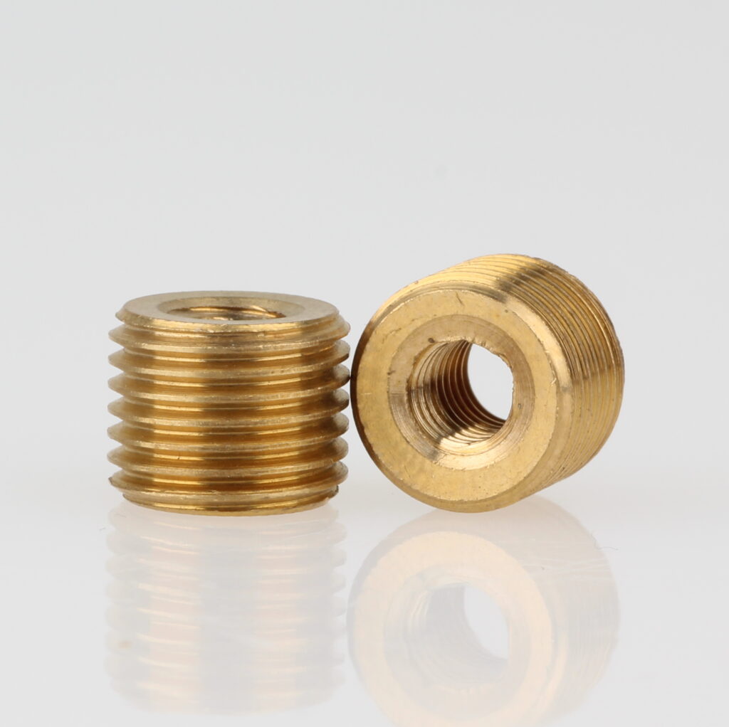 Ein Gewinde-Reduzierstück – auch Gewindeadapter genannt – besitzt sowohl ein Innengewinde als auch ein Außengewinde und verbindet zwei Bauteile mit unterschiedlichen Gewindedurchmessern.